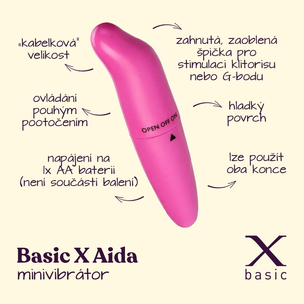 - BASIC X Aida minivibrátor růžovýMinivibrátor Aida je malý, ale velmi účinný vibrátor od značky BASIC X. Další informace59 Kč Koupit
