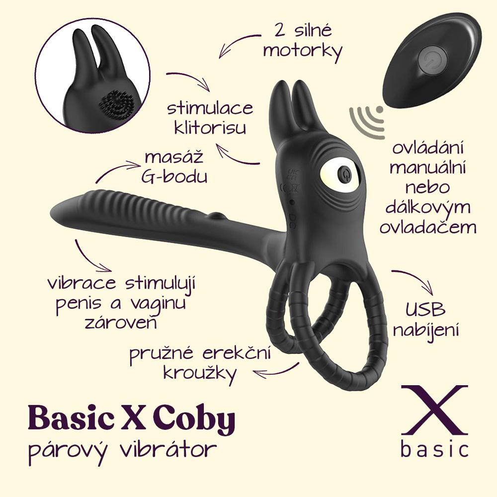 - Párový vibrátor BASIC X Coby rozšiřuje penis a přináší oběma partnerům nezapomenutelné zážitky. Je navržen pro maximální potěšení a pohodlí. Další informace1 199 Kč Koupit