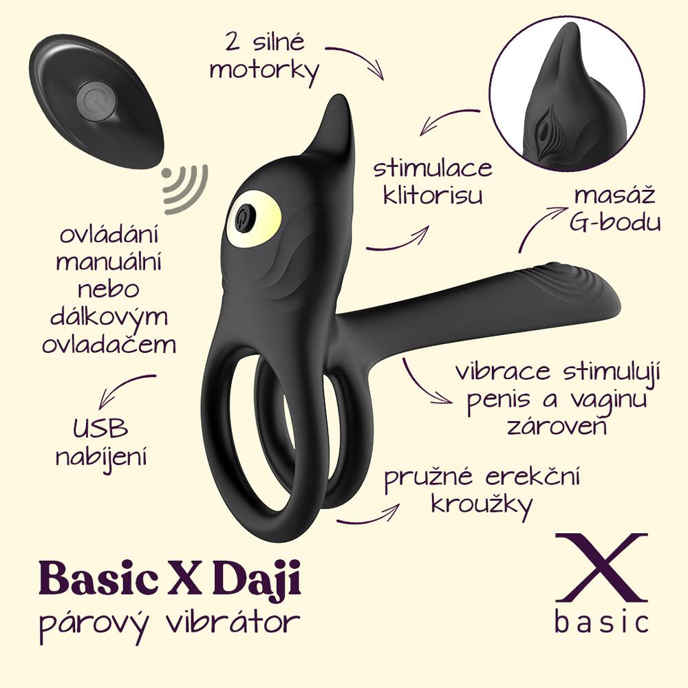 - Párový vibrátor BASIC X Daji rozšiřuje penis a přináší intenzivní potěšení oběma partnerům. Objevte nové dimenze rozkoše! Další informace1 199 Kč Koupit