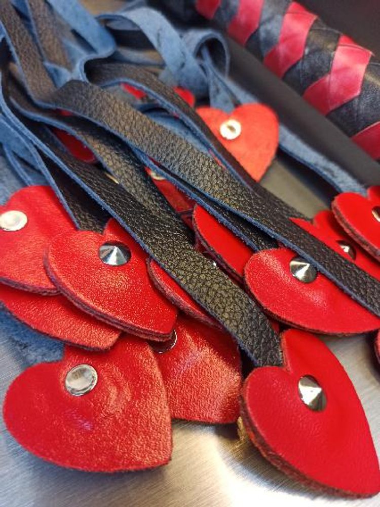 Luxusní kožený bič vyrobený na zakázku s třásněmi ve tvaru srdce.
