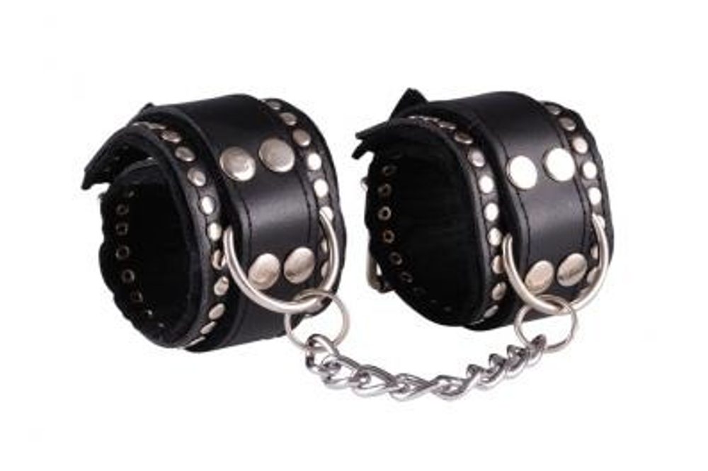 Kožená pouta na ruce zdobená – black/black