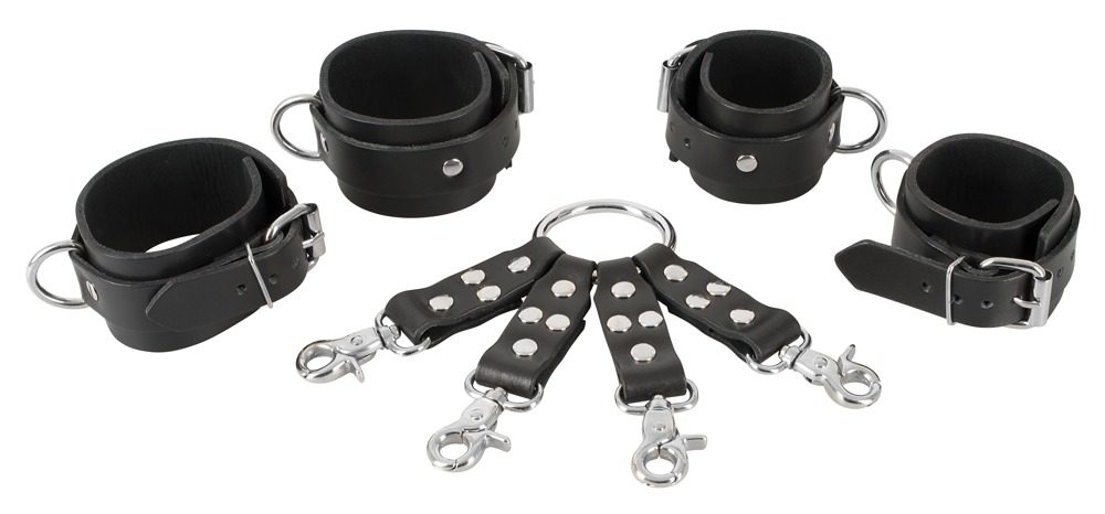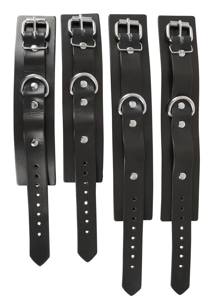 Obvod lze nastavit od 14–20 cm (pouta) a 19–25 cm (manžety kotníků). Zado Leather Restraint Set