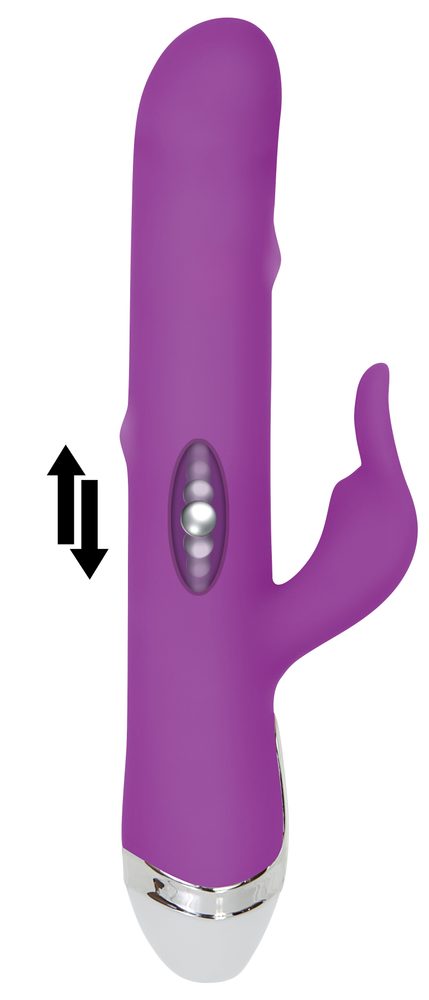 Duo vibrátor Evolved Dancing Rabbit má výkonný dvojitý motor a pohyblivé kuličky v hřídeli. Malá hlavička má tvar králičích uší a vibracemi stimuluje klitoris. Větší hlava stimuluje bod G prostřednictvím pohybujících se kuliček.