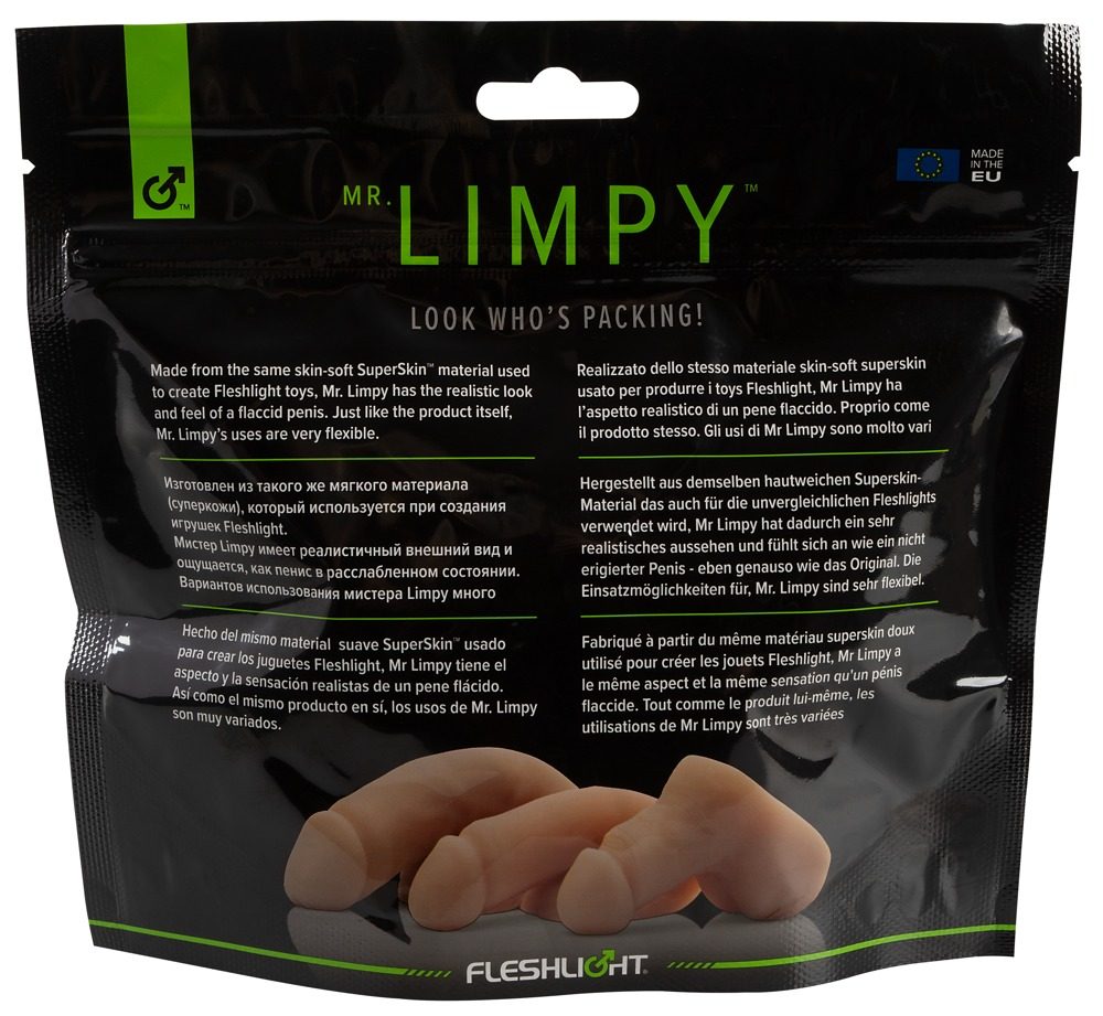 Mr. Limpy od Fleshlight je měkké, pružné dildo v neuvěřitelně živém vzhledu penisu s žaludkem a varlaty.