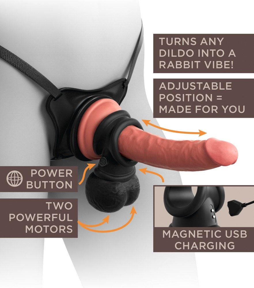 Jednoduchý páskový systém s přirozeným vibrátorem a výkyvnými vibrujícími varlaty! Sada Ultimate Vibrating Silicone Body Dock od King…