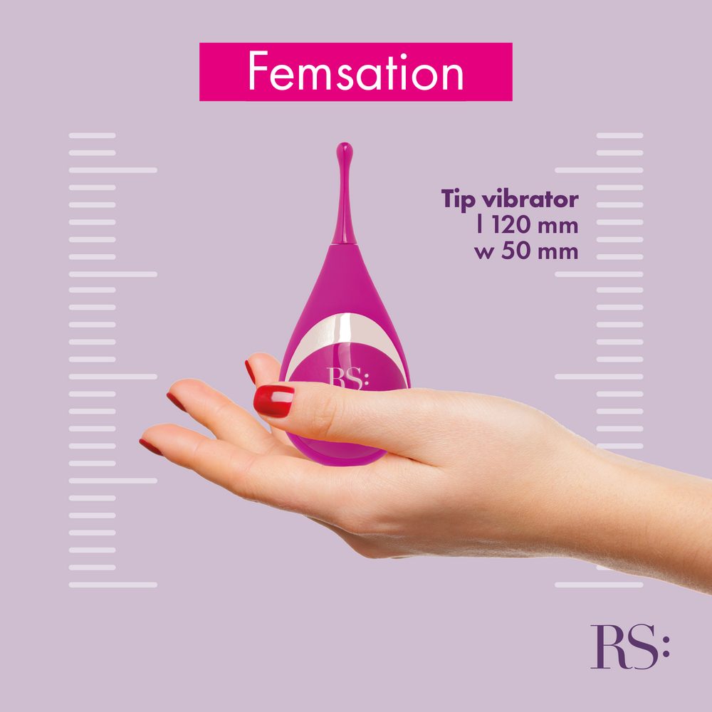 Ciťte se jako žena s tímto lechtivým masážním přístrojem Rianne S. Přesná stimulace vytváří intenzivní a zvláštní pocit. Femsation je ideální pro použití samostatně nebo s partnerem při milování, protože je malý a snadno se drží v dlani. S 5 frekvencemi si můžete vybrat perfektní vibraci, která vám nejlépe vyhovuje. S Femsation můžete svému průzkumu přidat zcela nový rozměr.