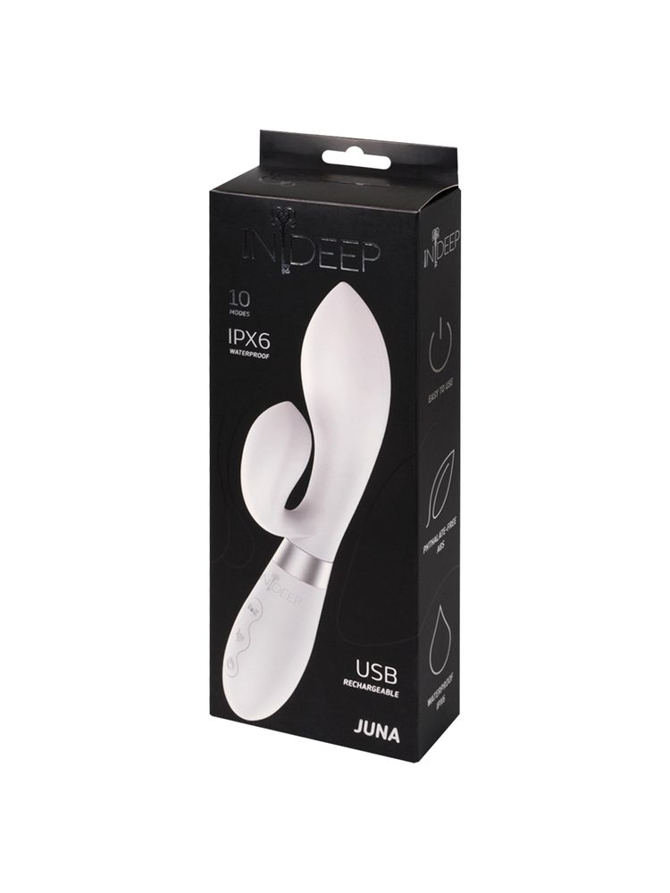 Juna je dobíjecí vibrační masážní přístroj, který spojuje sofistikovaný design a účinnou stimulaci. Nabízí 10 vibračních režimů a je ideální jak pro sólové potěšení, tak i jako součást intimní předehry s partnerem.