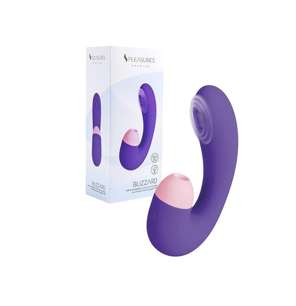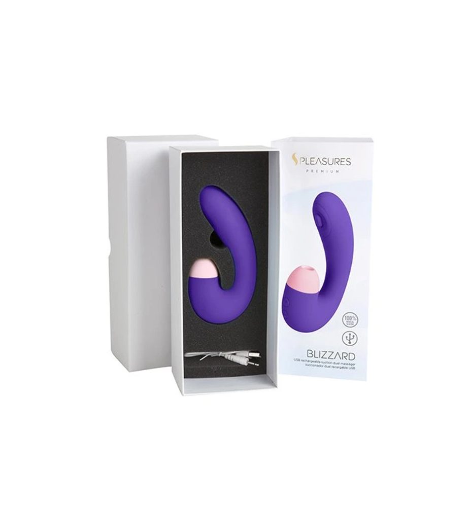 Blizzard od značky S Pleasures Premium Line je duální stimulační hračka speciálně navržená k současné masáži bodu G a klitorisu. Je to ideální vibrátor pro sebezkoumání. Je také plně vhodný pro anální penetraci. Pro zlepšení a zpříjemnění zážitku se doporučuje použití lubrikantu na vodní bázi. Je vyrobena ze 100% jemného a příjemného silikonu. Má dva zcela nezávislé a ovladatelné motory pomocí dvou různých tlačítek. Vibrace mají celkem 3 intenzity a 7 silných…
