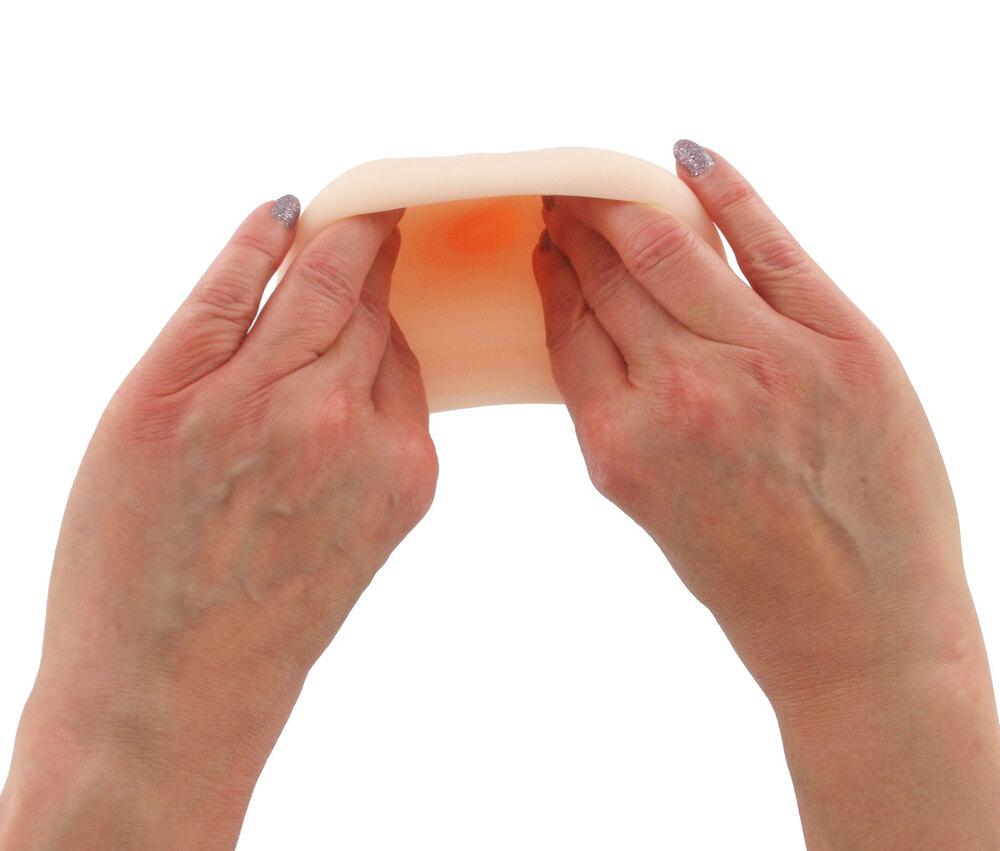Masturbátor ve tvaru úst se stimulující vnitřní strukturou.