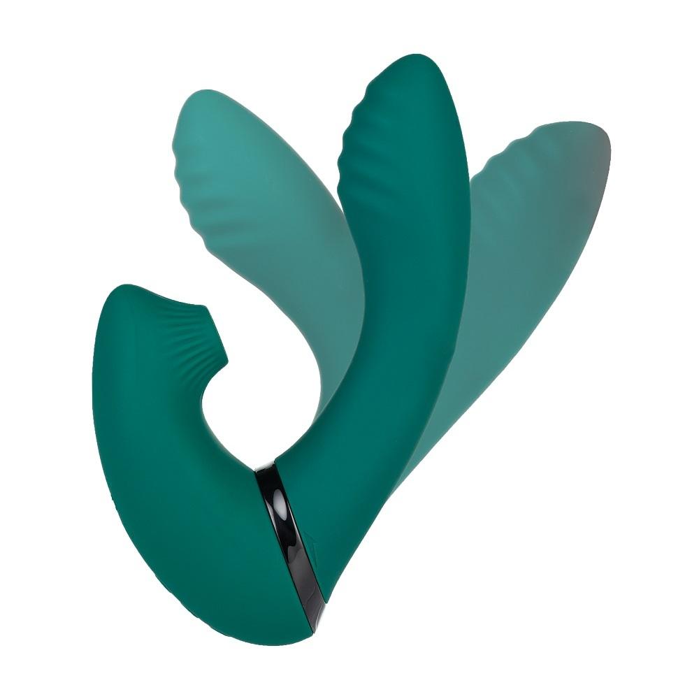 Vibrátor a podtlakový stimulátor v jednom s otočným kloubem.
