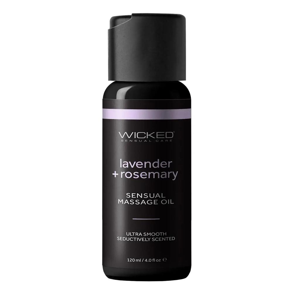 Masážní olej s uklidňující vůní levandule a rozmarýnu.