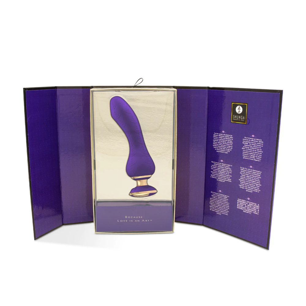 Vstupte do světa intimního potěšení s vibrátorem Shunga Sanya, který je navržen tak, aby uspokojil všechny vaše touhy a potřeby. Tento prémiový vibrátor v fialové barvě je ideálním společníkem pro ženy, které chtějí objevovat nové rozměry slasti. S délkou 18,5 cm a průměrem 3,8 cm je Sanya perfektně tvarovaný pro stimulaci G-bodu, klitorisu, vaginální a anální zóny.